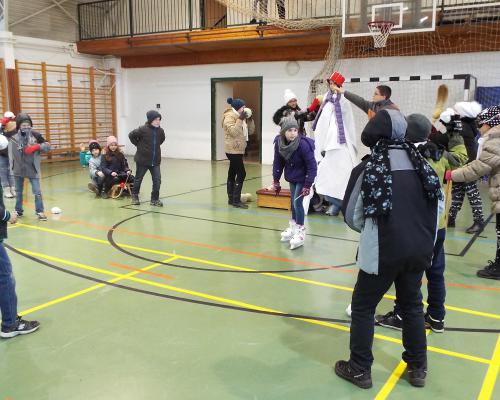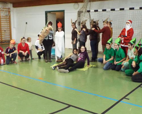 Nincs december Mikulás-buli nélkül! Természetesen Szent Miklós ünnepének közeledtével az osztályokon belül minden gyerek megajándékozza a másikat, de nagy várakozás kíséri a közös szórakozást is. A diákönkormányzat minden évben gondoskodik a hangulat megalapozásáról: előzetes feladatként változatos, frappáns kihívásokat állítanak az osztályok elé, amelynek tematikája az ünnepkörhöz kapcsolódik. A korábbi években voltak rövid kis előadások, különböző stílusban megzenésített Mikulás-dalok, az idén pedig az osztályoknak állóképekbe kellett belesűríteniük mindazt, amit számukra a tél és a karácsony jelent. Érdekes volt, hogy sokan elszakadtak a karácsony és Mikulás témakörtől és például volt olyan osztály, amely a disznóvágást, mint tipikus téli családi programot jelenítette meg.